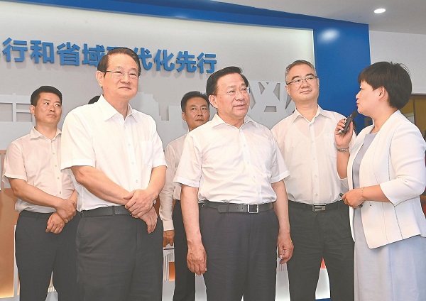 “千萬工程”引領(lǐng)浙江鄉(xiāng)村蝶變。上午,韓俊、王清憲等一行來到嘉興市嘉善縣姚莊鎮(zhèn)橫港村,察看村容村貌,與村民親切交談,聽取美麗鄉(xiāng)村建設(shè)、強(qiáng)村富民等情況介紹。韓俊強(qiáng)調(diào),“千萬工程”是習(xí)近平總書記在浙江工作時(shí)親自謀劃部署推進(jìn)的重大決策,要深入學(xué)習(xí)“千萬工程”經(jīng)驗(yàn),結(jié)合安徽實(shí)際扎實(shí)開展“千村引領(lǐng)、萬村升級(jí)”工程,加快建設(shè)彰顯徽風(fēng)皖韻宜居宜業(yè)和美鄉(xiāng)村。嘉善縣是長(zhǎng)三角生態(tài)綠色一體化發(fā)展示范區(qū)的重要組成部分,韓俊、王清憲等來到嘉善縣祥符蕩科創(chuàng)綠谷研發(fā)總部,步行考察祥符蕩水域景觀,認(rèn)真聽取嘉善縣經(jīng)濟(jì)社會(huì)發(fā)展情況介紹,詳細(xì)了解祥符蕩以田為景、以水為脈、以創(chuàng)新為核的綠色發(fā)展思路,察看浙大未來食品實(shí)驗(yàn)室和祥符實(shí)驗(yàn)室。韓俊表示,要學(xué)習(xí)嘉善一張藍(lán)圖繪到底、一以貫之抓落實(shí)的做法,推動(dòng)安徽縣域經(jīng)濟(jì)高質(zhì)量發(fā)展。要推動(dòng)更多高校在安徽開枝散葉、更多科技創(chuàng)新成果在安徽轉(zhuǎn)化落地。嘉興南湖紅船是我們黨夢(mèng)想起航的地方,韓俊、王清憲等懷著崇敬的心情瞻仰紅船,并走進(jìn)南湖革命紀(jì)念館參觀《紅船起航》主題展。韓俊強(qiáng)調(diào),要深入學(xué)習(xí)貫徹習(xí)近平總書記在瞻仰南湖紅船時(shí)的重要講話精神,大力弘揚(yáng)“紅船精神”,不斷汲取民族復(fù)興偉業(yè)的強(qiáng)大精神力量,不忘初心、牢記使命、永遠(yuǎn)奮斗,奮力開創(chuàng)現(xiàn)代化美好安徽建設(shè)新局面。