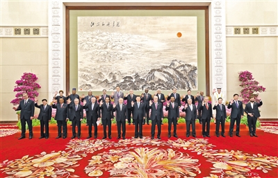 習(xí)近平同出席開(kāi)幕式的外方領(lǐng)導(dǎo)人集體合影。