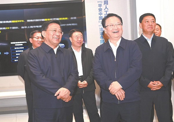 10月19日晚,由吉林省委書記景俊海,省委副書記、省長胡玉亭率領(lǐng)的吉林省黨政代表團(tuán)在安徽省委書記韓俊陪同下,參觀考察科大訊飛股份有限公司。本報記者 楊 竹 攝