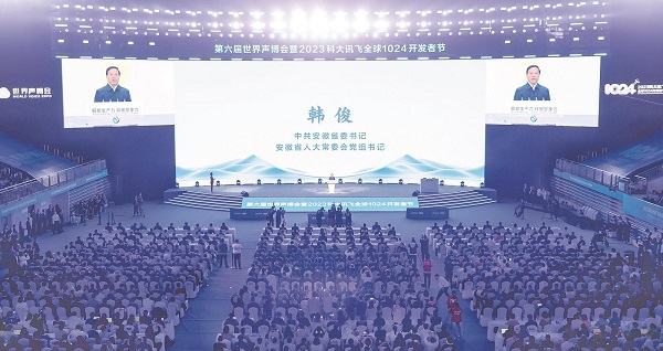 10月24日上午,第六屆世界聲博會(huì)暨2023科大訊飛全球1024開(kāi)發(fā)者節(jié)在合肥隆重開(kāi)幕。省委書記韓俊出席并宣布開(kāi)幕。本報(bào)記者 楊 竹 范柏文 攝