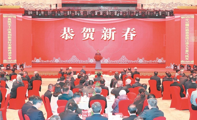 1月26日上午,省委、省政府在合肥舉行2025年春節(jié)團(tuán)拜會(huì)。省委書記梁言順出席并講話。本報(bào)記者 楊竹 許昊 攝