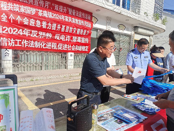 加強協(xié)調聯(lián)動拓寬基層治理渠道。茶庵鎮(zhèn)積極統(tǒng)籌各方力量參與矛盾隱患排查、糾紛調解等工作,凝聚多元共治合力,提升基層治理水平。依托網格化管理,對鎮(zhèn)域內可能影響社會穩(wěn)定的案件線索以及隱性苗頭開展“拉網式”排查,實現(xiàn)摸排全覆蓋,確保情況清、底數明。對摸排出的矛盾糾紛,第一時間由網格員、“兩代表一委員”“五老”(退休老干部、老黨員、老教師、老法律工作者、老退伍軍人)先行組織調解,調解不成由包村干部聯(lián)系鎮(zhèn)司法所、派出所、綜治中心等部門,整合工作力量,依法依規(guī)開展案件化解工作,將矛盾化解在早、化解在小、化解在萌芽狀態(tài)。2023年以來,共排查矛盾隱患107件,已化解104件。組建法治宣傳隊8支,開展《信訪工作條例》進村活動16次,制作發(fā)放相關宣傳冊3200余份。