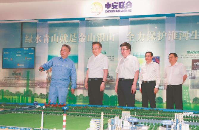 中安聯(lián)合煤化有限責(zé)任公司是華東地區(qū)最大的全產(chǎn)業(yè)鏈煤化一體化高新技術(shù)企業(yè),曾榮獲“國家優(yōu)質(zhì)工程金獎(jiǎng)”。梁言順走進(jìn)企業(yè)展館和中央控制室,了解煤化工生產(chǎn)和企業(yè)經(jīng)營情況。他指出,淮南市緣煤而建、因煤而興,要一手抓傳統(tǒng)產(chǎn)業(yè)“脫胎換骨”、一手抓新興產(chǎn)業(yè)“強(qiáng)筋壯骨”,進(jìn)一步延伸產(chǎn)業(yè)鏈條,推動(dòng)產(chǎn)業(yè)邁向“高精尖”,構(gòu)建“龍頭+集群”產(chǎn)業(yè)生態(tài),努力從“煤疙瘩”里培育出更多“金娃娃”。來到淮南賽緯電子材料有限公司,梁言順聽取零碳產(chǎn)業(yè)園和企業(yè)生產(chǎn)經(jīng)營等情況介紹,勉勵(lì)企業(yè)堅(jiān)持以高端化、多元化、低碳化為方向,以科技創(chuàng)新為引領(lǐng),持續(xù)加強(qiáng)技術(shù)研發(fā),推動(dòng)產(chǎn)品向“新”逐“綠”,進(jìn)一步提高企業(yè)核心競(jìng)爭(zhēng)力。