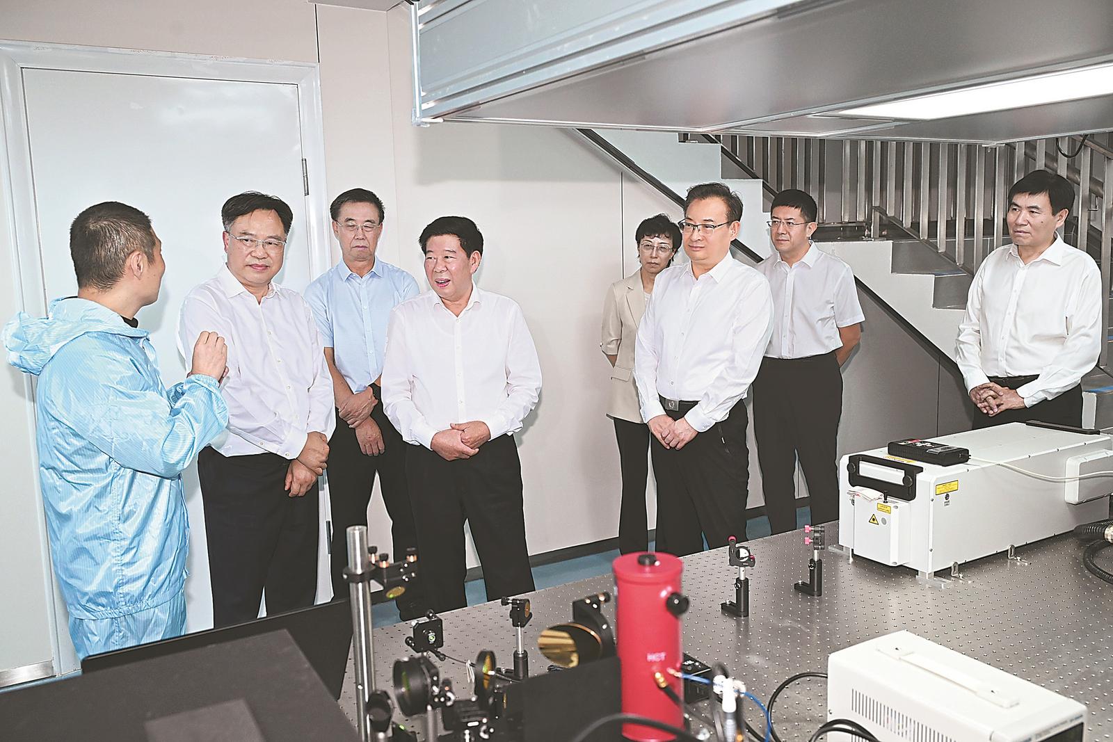 安徽大學(xué)是國家“雙一流”和“211工程”建設(shè)高校。梁言順、徐令義來到安徽大學(xué)強(qiáng)光磁科學(xué)中心,了解強(qiáng)光磁試驗(yàn)裝置建設(shè)情況,鼓勵科研人員圍繞集成電路、新能源汽車等領(lǐng)域,加強(qiáng)基礎(chǔ)研究和應(yīng)用基礎(chǔ)研究,努力取得更多原創(chuàng)性引領(lǐng)性科技成果。在集成電路先進(jìn)材料與技術(shù)產(chǎn)教研融合研究院,梁言順、徐令義察看產(chǎn)教研示范研發(fā)線,勉勵學(xué)校深化產(chǎn)學(xué)研對接合作,堅(jiān)持平臺引人、事業(yè)留人,加強(qiáng)與企業(yè)聯(lián)合攻關(guān),推動更多科研成果走出實(shí)驗(yàn)室、走向生產(chǎn)線。